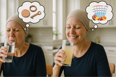 That metallic taste making water unbearable? You're not alone! Cancer patients consistently report that specially formulated electrolyte drinks make hydration possible again when plain water becomes repulsive during treatment.4