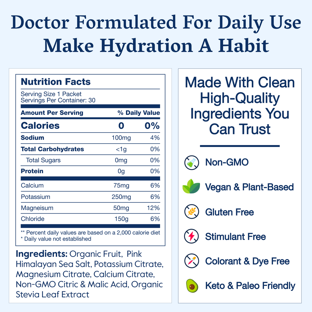 Clean, research-backed ingredients delivered at the perfect ratio for all-day hydration and energy.